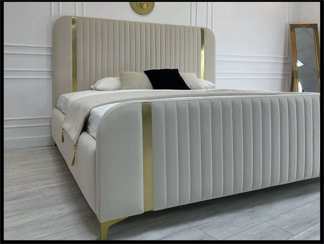 Allegra Gold Panel Bed Frame – Modern Elegance With Optional Storage